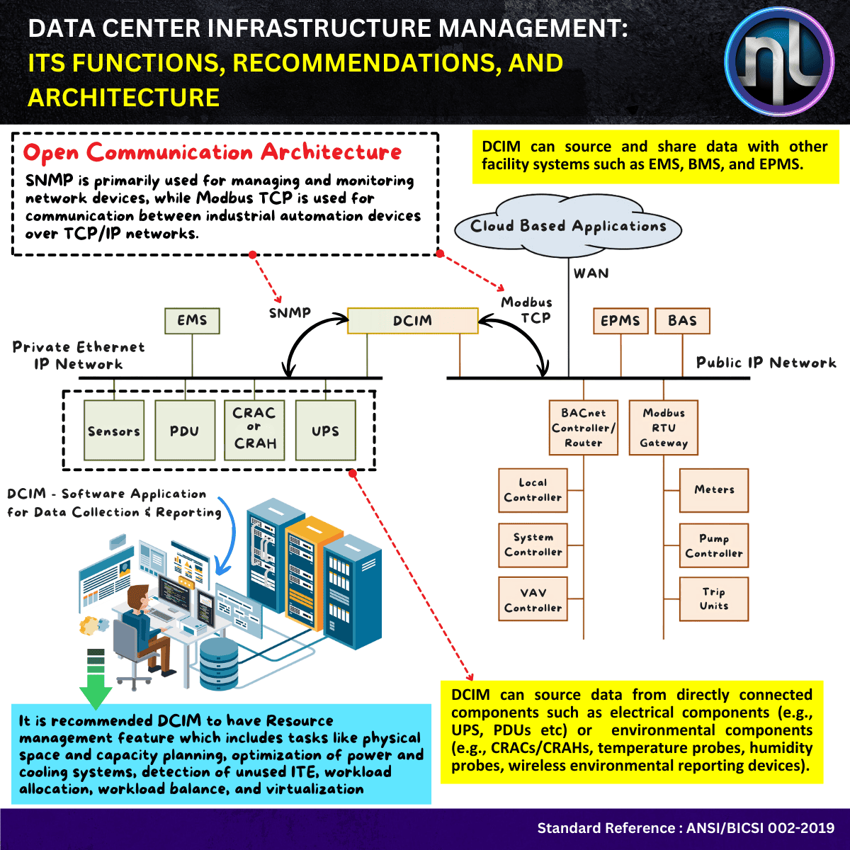 Data Centers | Informative DCIM Essentials: Functions, Architecture & Best Practices for Data Center Optimization Data Center Infrastructure Management (DCIM) is a critical software solution that enhances visibility, efficiency, and control in modern data centers. While it doesn’t directly control devices, DCIM aggregates data from physical infrastructure systems to support informed decision-making and proactive management. What DCIM Does ✅ DCIM is a software application or suite of applications designed to gather, monitor, and aggregate data from various subsystems within a data center facility.✅ DCIM does not directly control devices but serves as a data collection and reporting tool.✅ Aggregated data is used for automated or manual adjustments to physical infrastructure to enhance efficiency, fault tolerance, workflow management, and accommodate facility changes. Key Recommendations for Effective DCIM Deployment 1. Open Communication Architecture Supports integration with third-party software and devices via standard IP and industrial protocols. Interfaces with power systems (UPS, PDUs, RPPs), cooling systems (CRACs, CRAHs), and environmental sensors. 2. Data Alerts & Trend Analysis DCIM should provide real-time alerts for threshold breaches and offer data trending to predict and prevent future issues. 3. Scalability Must be scalable to suit both edge facilities and large enterprise environments. 4. Analytical Capabilities Should perform real-time calculations and evolve assumptions based on actual device counts and sensor data. 5. Informed Decision Making Utilize collected data to improve operational efficiency, minimize downtime, lower costs, and support predictive modeling. 6. Flexible Architecture Should support devices on public/private LANs, dedicated networks, or enterprise networks—both on-premises and cloud-managed. 7. Distributed Management Functions Basic management functions may reside in hardware, while complex analytics and workflow automation should be server- or cloud-based. 8. Future-Ready Scalability The platform should allow easy upgrades and future functionality expansion. 9. Resource Management Include features for space planning, power/cooling optimization, unused asset identification, virtualization support, and workload balancing. DCIM is more than a monitoring tool—it’s a strategic enabler for resilient, efficient, and future-ready data center operations. By integrating diverse infrastructure systems under a unified platform, DCIM empowers operators to maintain control, drive performance, and adapt to evolving business demands.