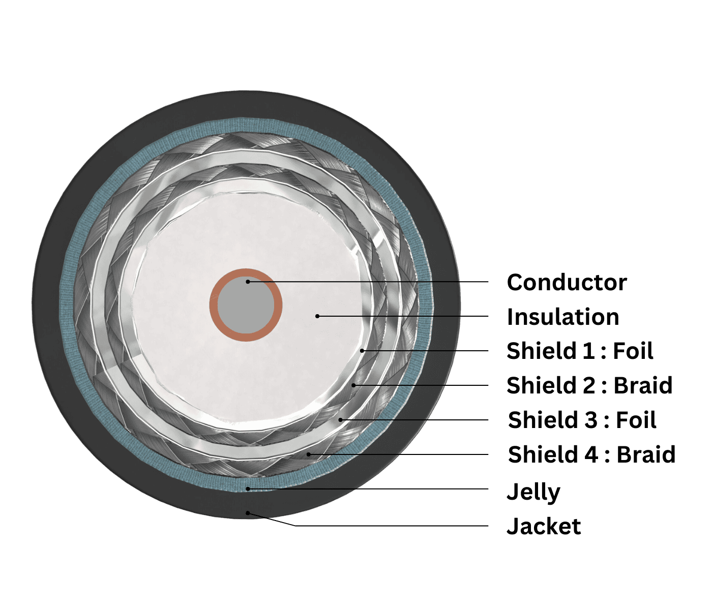 Infinity RG6 Coaxial Cable, Quad Shield, Direct Burial is engineered for superior performance in outdoor installations. With an 18AWG solid copper-clad steel (CCS) conductor, four-layer shielding (aluminum foil and ALMG braid), and a durable gel-coated PE jacket, this cable ensures excellent signal integrity and protection against environmental factors. Designed for 75 Ohm applications, it is perfect for satellite TV, cable internet, and surveillance systems requiring long-lasting durability and reliability.