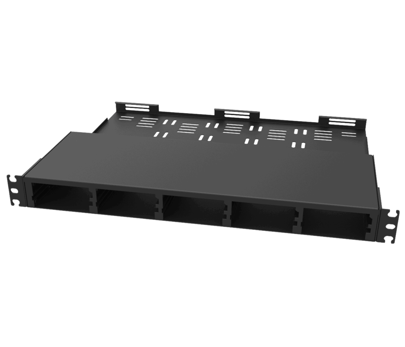 The FotonShield MD Cassette Type Fiber Patch Panel is a medium-density (MD) fiber management solution designed for fiber optic access networks. It offers high fiber capacity in a compact 1RU 19-inch rack-mountable form, accommodating up to 5 MD cassettes, supporting a maximum of 60F (SC) or 120F (LC). This modular patch panel allows for flexible fiber management with multiple MD cassette configurations. It features removable front and rear organizers, ensuring clean cable routing and easy maintenance. The sturdy galvanized sheet metal body enhances durability, while the optimized design maximizes space efficiency.