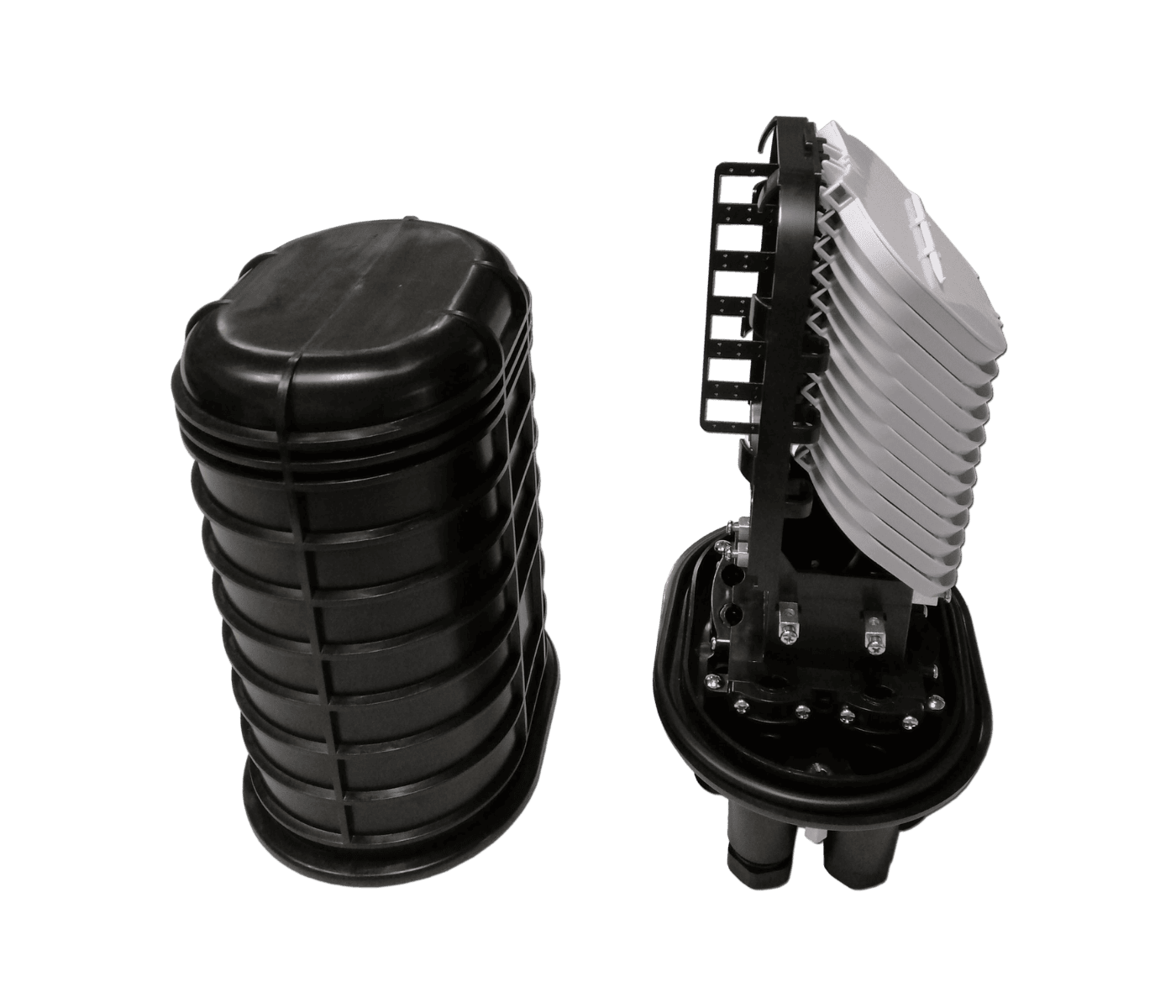 The DomeFOSE 288F Oval Dome Fiber Optic Splice Enclosure is a high-capacity, mechanically sealed solution designed to support fiber splicing and protection in various outdoor environments. Built with impact-resistant PP+UV material, this enclosure ensures long-term durability against extreme temperatures, corrosion, and environmental exposure. Featuring 8 round cable ports, including 2 ports that allow cable entry without cutting, it provides flexibility for fiber distribution and backbone applications. The IP68-rated mechanical sealing structure ensures superior waterproof and dustproof performance, making it suitable for aerial, pole-mounted, wall-mounted, duct, and direct-buried installations.