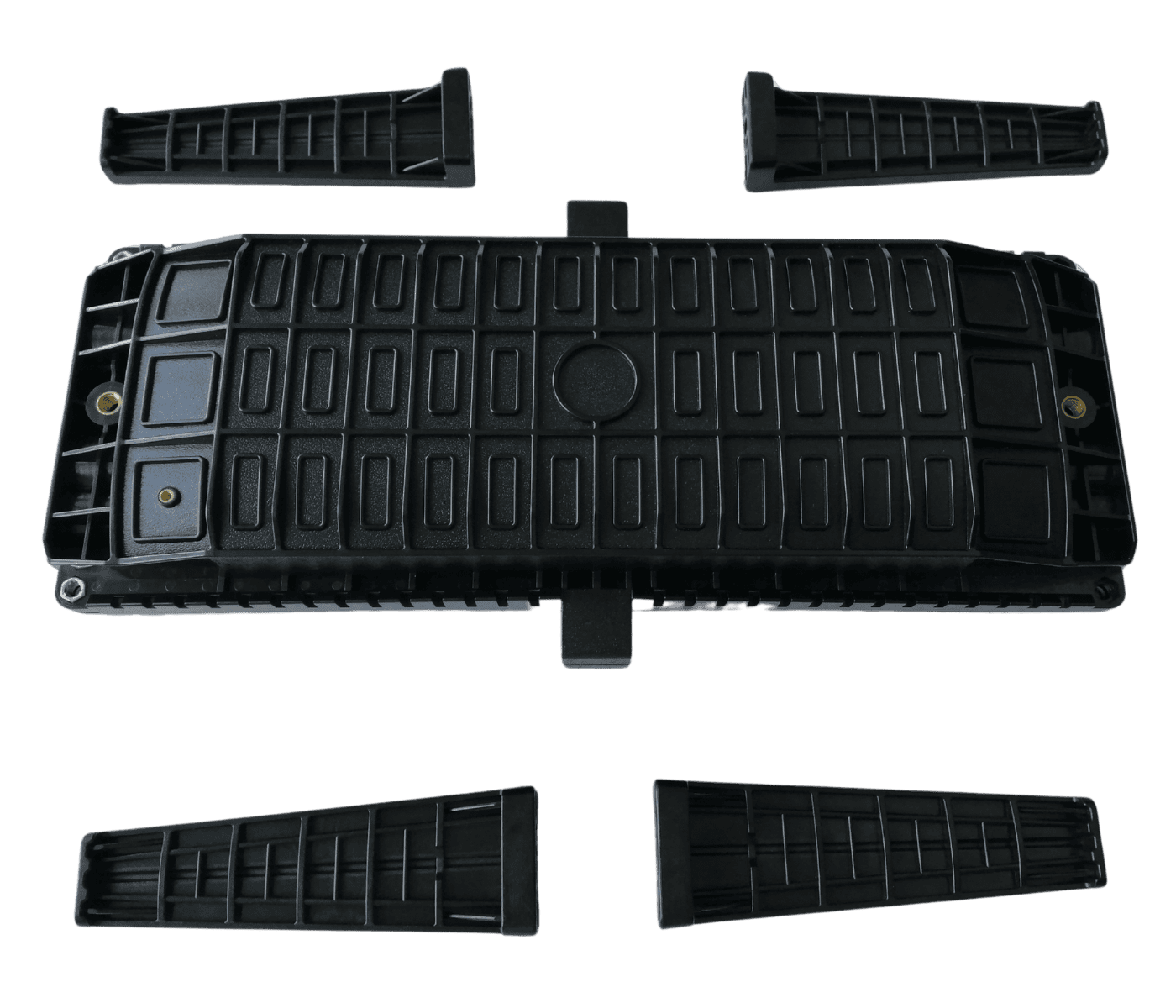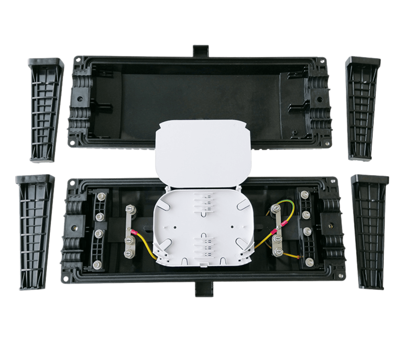 The InFOSE Inline Fiber Optic Splice Enclosure is a high-performance fiber splicing and protection solution designed for outdoor applications. Constructed from premium-quality PC plastic, this enclosure offers superior impact resistance, weatherproofing, and durability. With 6 in-out round ports supporting cable diameters of Ф23mm, Ф19.5mm, and Ф16mm, it accommodates up to 96 fibers, utilizing 4 splice trays (24F per tray). The mechanical sealing system, filled with a durable sealing material, allows secure closure, re-entry, and reuse without needing new sealing material. Designed for aerial-hanging and wall-mount installations, this enclosure is ideal for FTTH networks, backbone fiber infrastructure, and access networks.