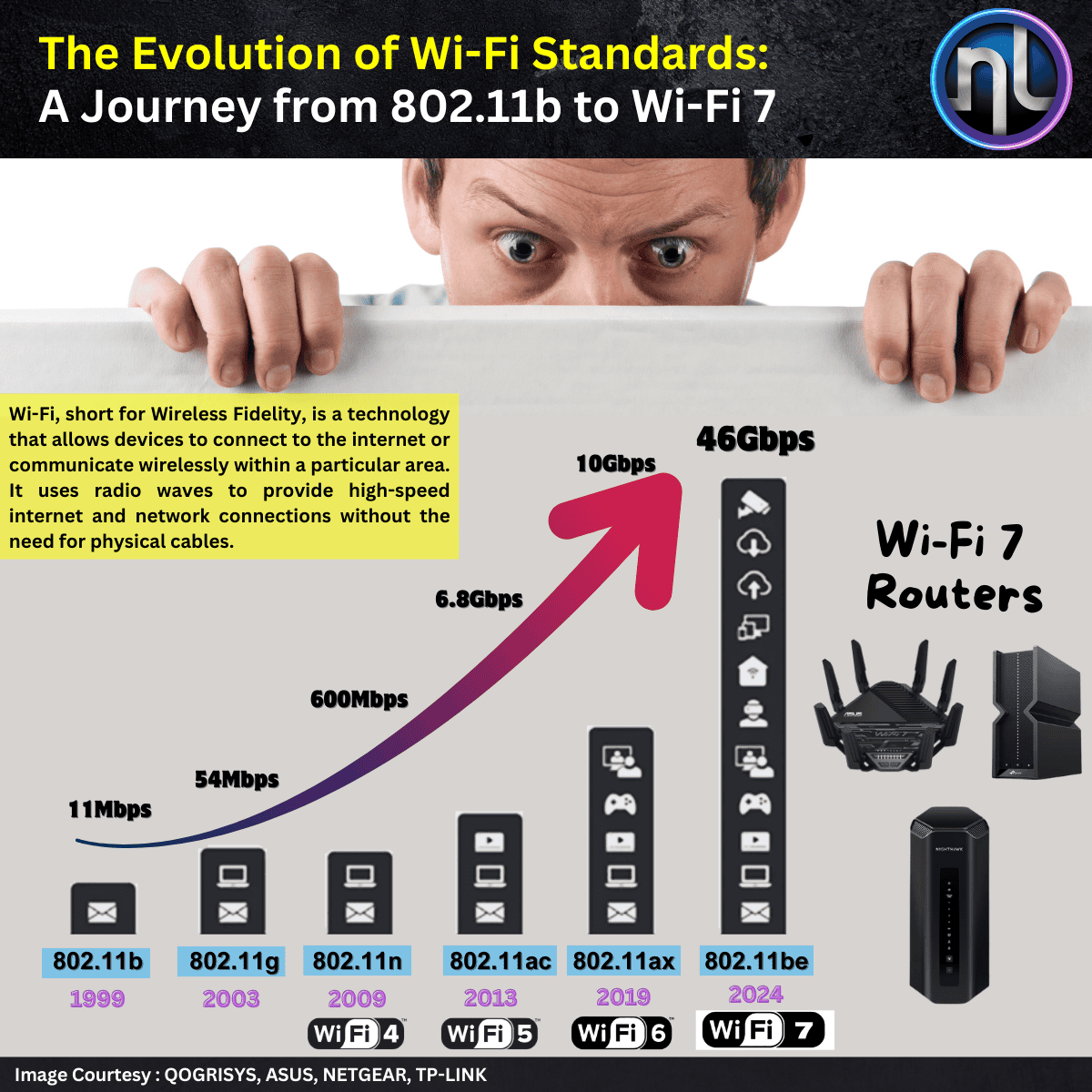 Informative | Structured Cabling The Evolution of Wi-Fi Standards: A Journey from 802.11b to Wi-Fi 7 In today’s connected world, Wi-Fi is a fundamental component of digital infrastructure—powering everything from homes to enterprises and data centers. The journey of Wi-Fi standards from 802.11b to the revolutionary Wi-Fi 7 showcases the incredible strides in wireless technology over the past two decades. The Milestones of Wi-Fi Standards: ✅ 802.11b (1999) Highlight: Reliable coverage with good wall penetration Max Speed: 11 Mbps Frequency Band: 2.4 GHz Technology: Complementary Code Keying (CCK) ✅ 802.11g (2003) Max Speed: 54 Mbps Frequency Band: 2.4 GHz Technology: OFDM Highlight: Backward-compatible with 802.11b, offering better speed ✅ 802.11n (Wi-Fi 4) (2009) Max Speed: Up to 600 Mbps Frequency Bands: 2.4 GHz & 5 GHz Technology: Multiple Input Multiple Output (MIMO) Highlight: Support for multiple data streams, enhancing speed and reliability ✅ 802.11ac (Wi-Fi 5) (2013) Max Speed: 1 Gbps+ Frequency Band: 5 GHz Technology: Enhanced MIMO, Beamforming Highlight: Introduced faster speeds for high-performance applications ✅ 802.11ax (Wi-Fi 6) (2019) Max Speed: Increased efficiency per user Technology: OFDMA, MU-MIMO Highlight: Ideal for dense environments like offices and stadiums ✅ 802.11be (Wi-Fi 7) (2024) Max Speed: Up to 46 Gbps Technologies: 320 MHz bandwidth 4096-QAM Multi-Link Operation (MLO) Multi-RU Enhanced MU-MIMO Multi-AP Coordination Highlight: Delivers 4x the throughput of Wi-Fi 6 with ultra-low latency What This Means As Wi-Fi standards continue to evolve, they unlock new possibilities in smart buildings, data centers, and enterprise connectivity. The latest innovations—like those in Wi-Fi 7—are engineered to support ultra-fast, high-density, and mission-critical environments. Northern Link’s structured cabling and connectivity solutions are built to support the ever-increasing bandwidth demands brought by the evolution of wireless technologies. Whether you’re deploying in a commercial building or a high-capacity data center, our solutions are ready for tomorrow’s networks—today.